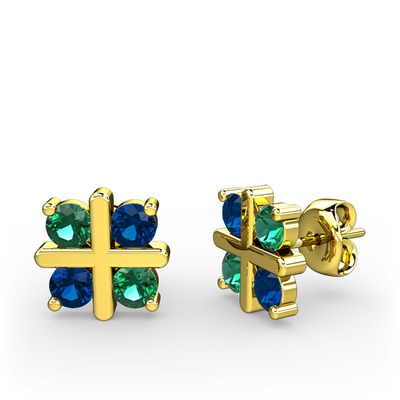 Yeşil kuvars ve lab safir 925 ayar altın kaplama gümüş küpe