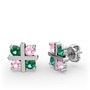 Yeşil kuvars ve pembe kuvars 18 ayar beyaz altın küpe