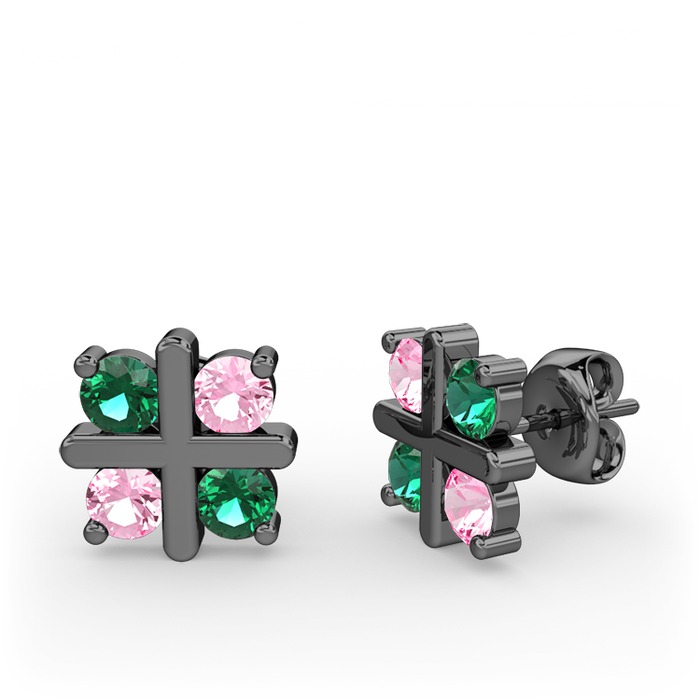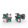 Yeşil kuvars ve pembe kuvars 925 ayar siyah rodyum kaplama gümüş küpe