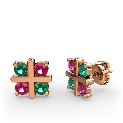 Yeşil kuvars ve rodolit garnet 14 ayar rose altın küpe