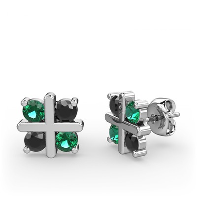 Yeşil kuvars ve siyah zirkon 14 ayar beyaz altın küpe