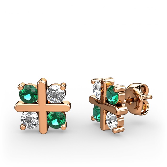 Yeşil kuvars ve swarovski 8 ayar rose altın küpe