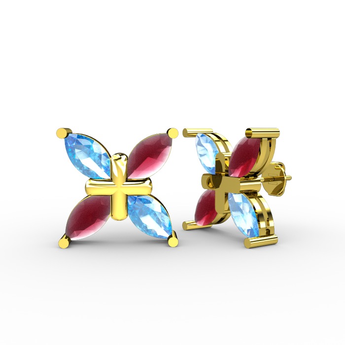 Akuamarin ve kök yakut 18 ayar altın küpe
