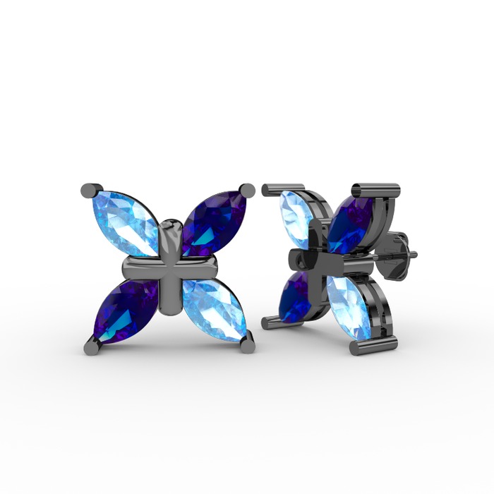 Akuamarin ve lab safir 925 ayar siyah rodyum kaplama gümüş küpe