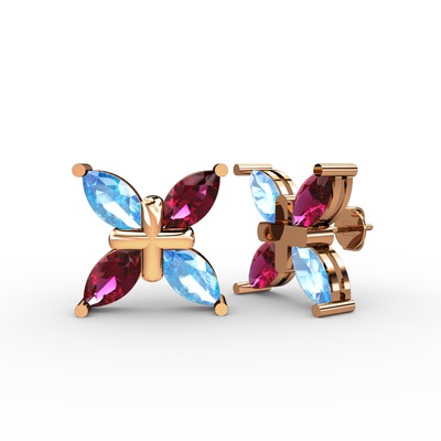 Akuamarin ve rodolit garnet 925 ayar rose altın kaplama gümüş küpe