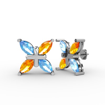 Akuamarin ve sitrin 14 ayar beyaz altın küpe