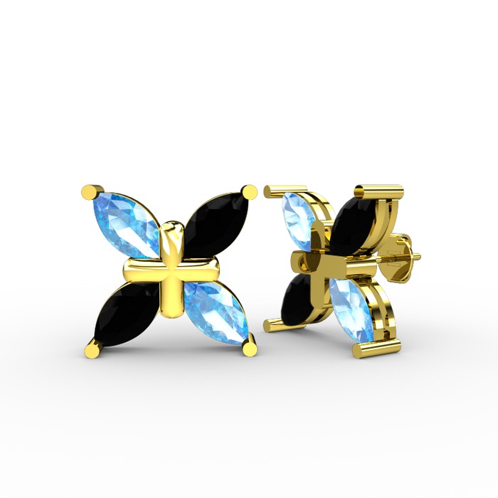 Akuamarin ve siyah zirkon 925 ayar altın kaplama gümüş küpe