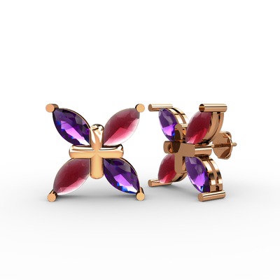 Ametist ve kök yakut 18 ayar rose altın küpe
