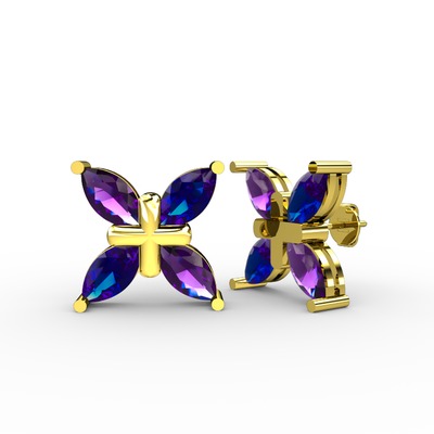 Ametist ve lab safir 18 ayar altın küpe