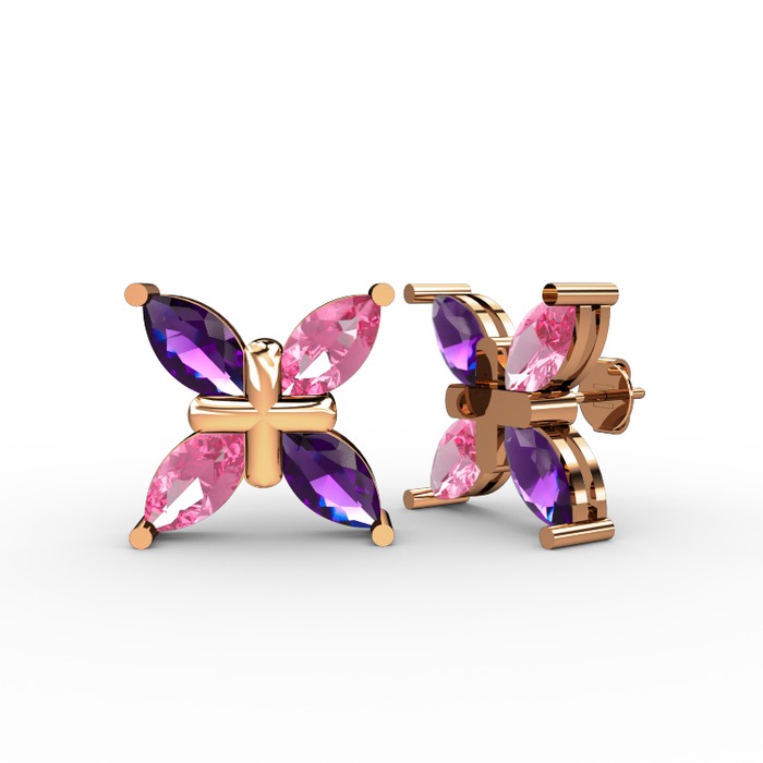 Ametist ve pembe kuvars 18 ayar rose altın küpe