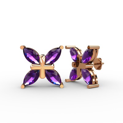 Ametist 925 ayar rose altın kaplama gümüş küpe