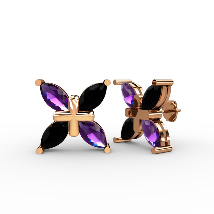 Ametist ve siyah zirkon 18 ayar rose altın küpe