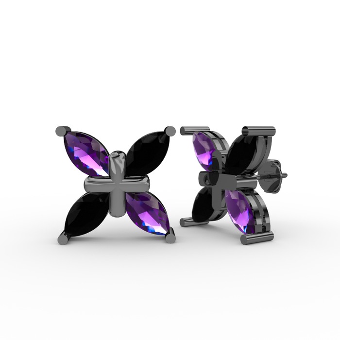 Ametist ve siyah zirkon 925 ayar siyah rodyum kaplama gümüş küpe