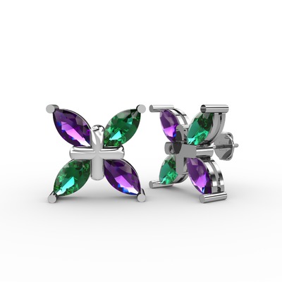 Ametist ve yeşil kuvars 14 ayar beyaz altın küpe