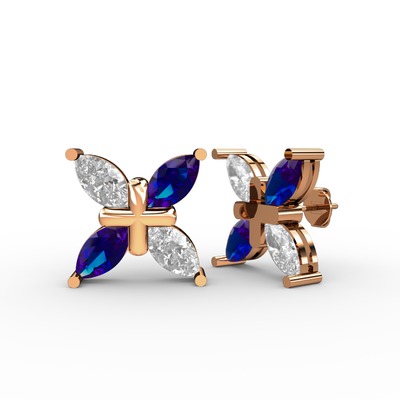 Beyaz zirkon ve lab safir 18 ayar rose altın küpe
