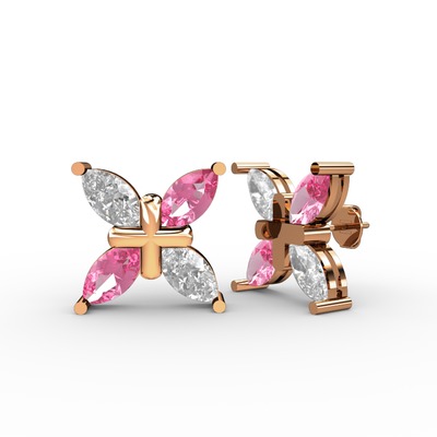 Beyaz zirkon ve pembe kuvars 18 ayar rose altın küpe