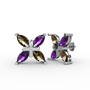 Dumanlı kuvars ve ametist 14 ayar beyaz altın küpe