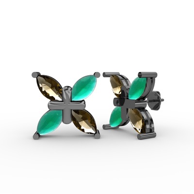 Dumanlı kuvars ve kök zümrüt 925 ayar siyah rodyum kaplama gümüş küpe