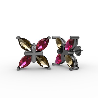 Dumanlı kuvars ve rodolit garnet 925 ayar siyah rodyum kaplama gümüş küpe