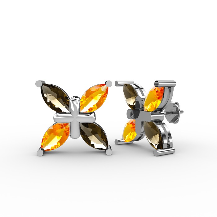 Dumanlı kuvars ve sitrin 8 ayar beyaz altın küpe