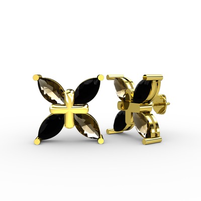 Dumanlı kuvars ve siyah zirkon 18 ayar altın küpe