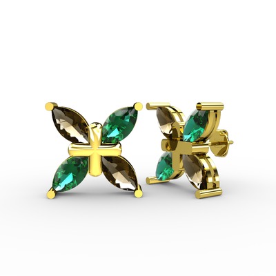 Dumanlı kuvars ve yeşil kuvars 18 ayar altın küpe