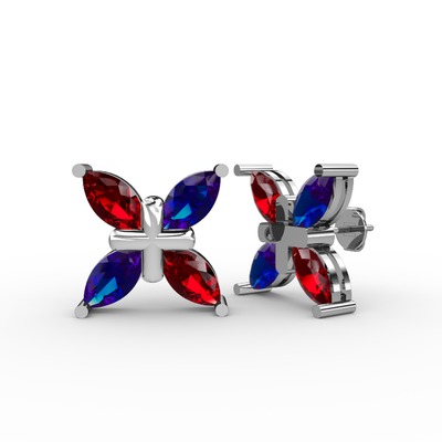 Garnet ve lab safir 14 ayar beyaz altın küpe