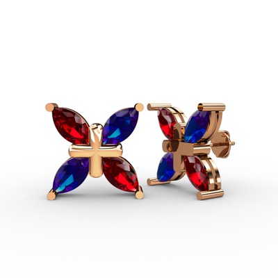 Garnet ve lab safir 925 ayar rose altın kaplama gümüş küpe