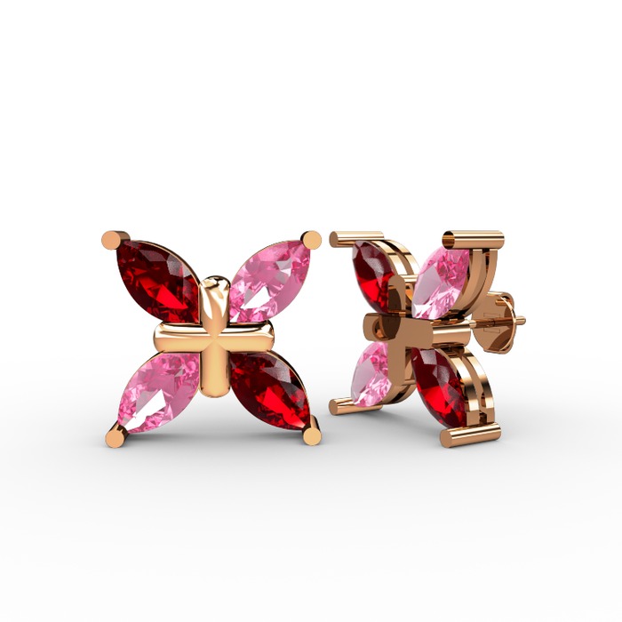 Garnet ve pembe kuvars 8 ayar rose altın küpe