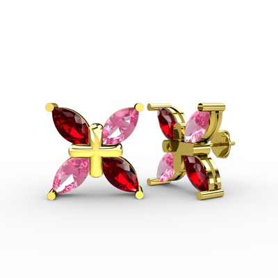 Garnet ve pembe kuvars 925 ayar altın kaplama gümüş küpe