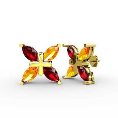 Garnet ve sitrin 925 ayar altın kaplama gümüş küpe