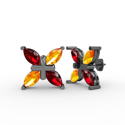 Garnet ve sitrin 925 ayar siyah rodyum kaplama gümüş küpe