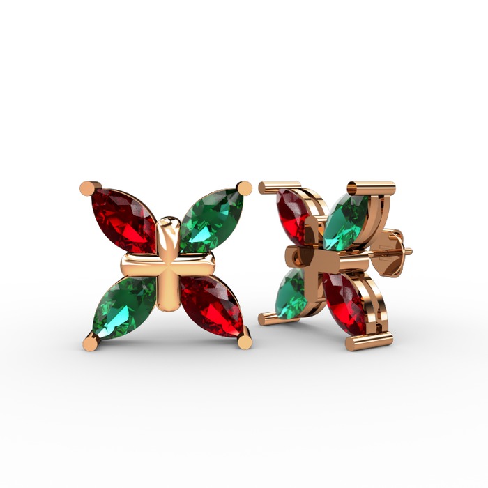 Garnet ve yeşil kuvars 14 ayar rose altın küpe