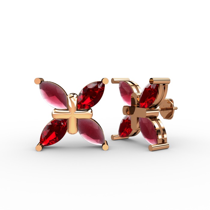 Kök yakut ve garnet 14 ayar rose altın küpe