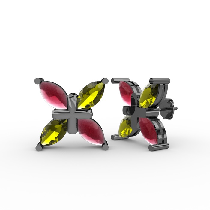 Kök yakut ve peridot 925 ayar siyah rodyum kaplama gümüş küpe