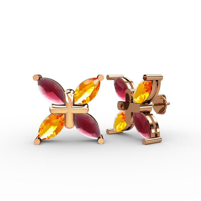 Kök yakut ve sitrin 14 ayar rose altın küpe