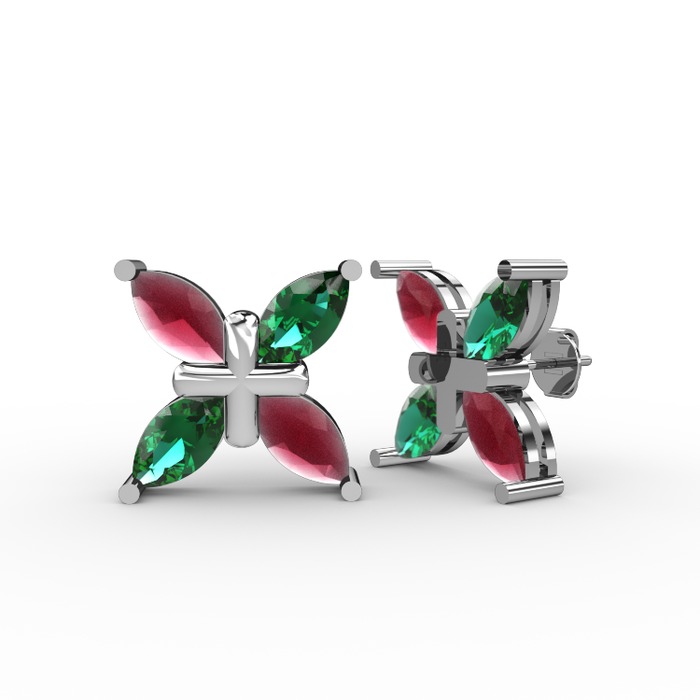 Kök yakut ve yeşil kuvars 8 ayar beyaz altın küpe
