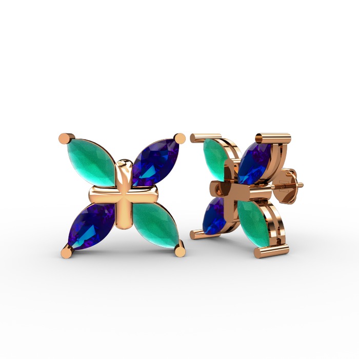 Kök zümrüt ve lab safir 925 ayar rose altın kaplama gümüş küpe