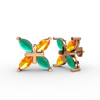 Kök zümrüt ve sitrin 18 ayar rose altın küpe