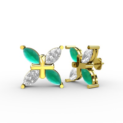 Kök zümrüt ve swarovski 8 ayar altın küpe