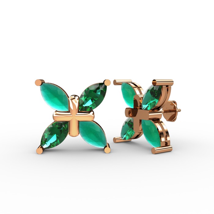Kök zümrüt ve yeşil kuvars 14 ayar rose altın küpe