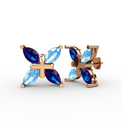 Lab safir ve akuamarin 18 ayar rose altın küpe