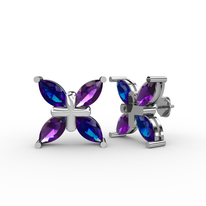 Lab safir ve ametist 18 ayar beyaz altın küpe