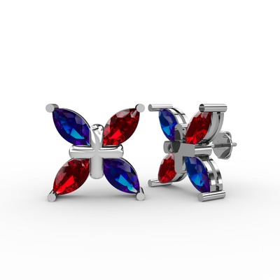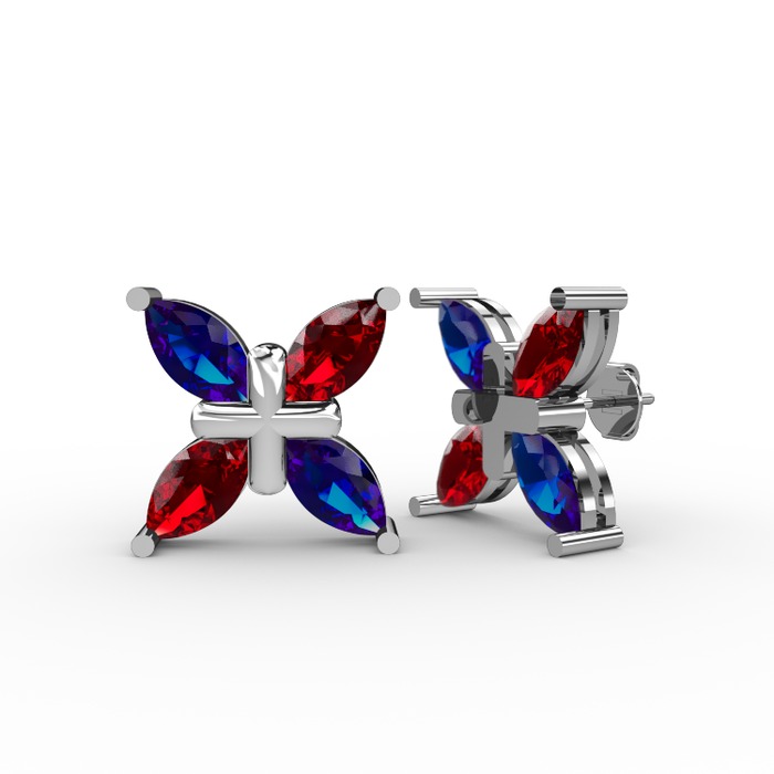Lab safir ve garnet 18 ayar beyaz altın küpe