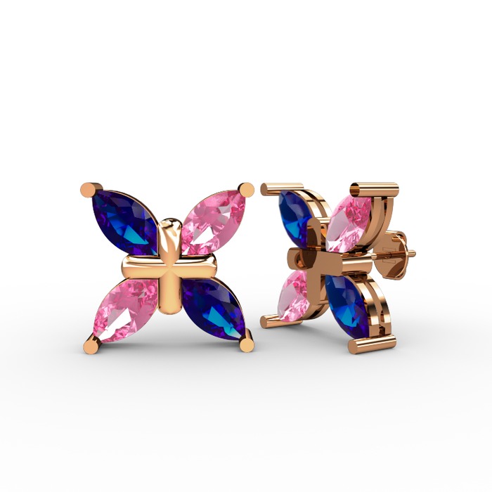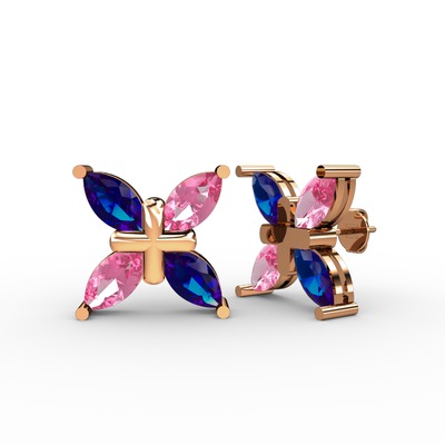 Lab safir ve pembe kuvars 8 ayar rose altın küpe