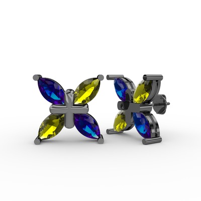 Lab safir ve peridot 925 ayar siyah rodyum kaplama gümüş küpe