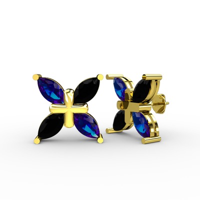 Lab safir ve siyah zirkon 925 ayar altın kaplama gümüş küpe