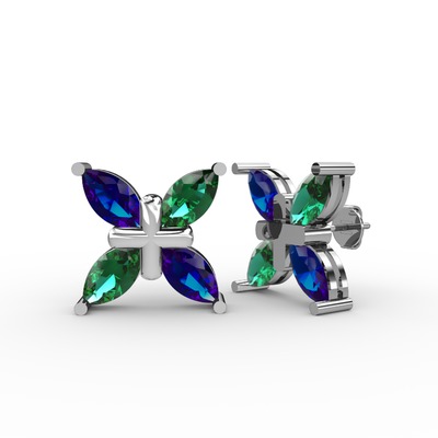 Lab safir ve yeşil kuvars 8 ayar beyaz altın küpe
