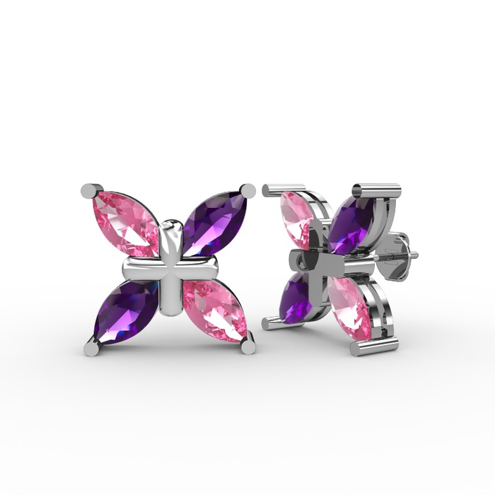 Pembe kuvars ve ametist 8 ayar beyaz altın küpe