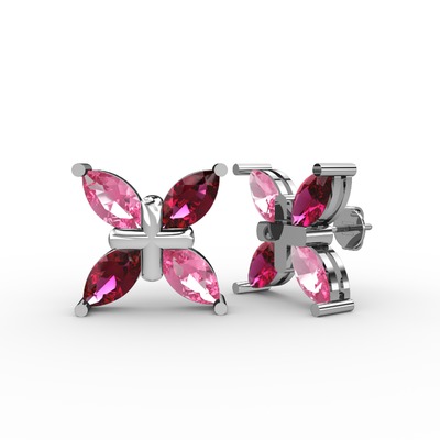 Pembe kuvars ve rodolit garnet 18 ayar beyaz altın küpe